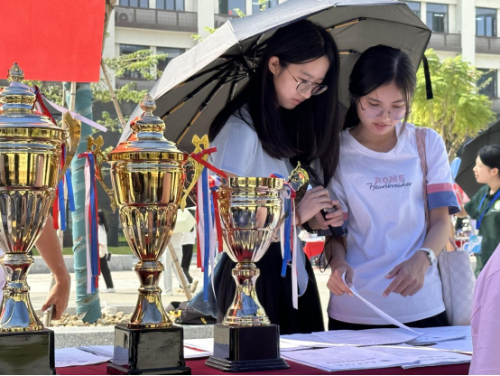 suncitygroup太阳集团积极配合学校安排,着力打造“特色型、专业型、团队型”的科技学术活动,多方面、全方位挖掘学生的潜能。9:30,科技学术季作品展于惠州校区西广场教学楼前准时开展,全体师生到场参观欣赏。摊位上摆放着众多优秀学子的科研相关项目书、创新成品、获奖证书和奖杯。这些优秀成果吸引老师同学们前来参观,老师们询问相关创作动机及后期投放方向后表扬并祝福他们能够成功;同学们了解创新成果的应用场景和使用指南后,迅速激发了合作热情,表示也要积极创新创业。