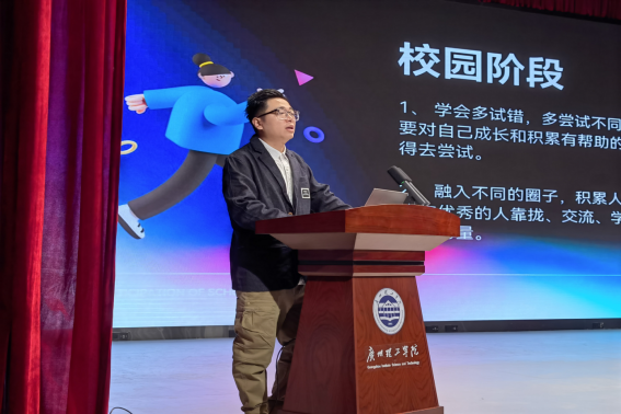 首先,黎岳镔师兄简单进行自我介绍,向同学们讲述自己在校时是如何做好各项工作,分享自己的经验,给同学们提供参考。其次,他讲解什么是创业,提出创业各个时期所需要做的是什么,并从自己的角度给同学们提建议,为同学们指明前进的道路。最后,他对同学们予以祝福,并告诫同学们创业不易,要做就做到底,不可轻言放弃。