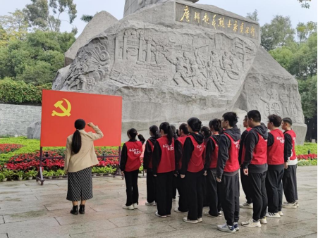 学生党支部书记孟芳带领各位党员同志重温了入党誓词。在庄严肃穆的氛围中,大家举起右拳,铿锵有力地宣读着誓言。随后,讲解员向同志们生动地讲述了广州起义的经过和烈士们的英勇事迹。他们参观了广州公社烈士墓、叶剑英烈士纪念碑等纪念场所,追忆了红色印记、重温了烽火岁月,接受了革命精神的洗礼,同时回顾了革命先烈们为了中国革命事业英勇献身、为实现人民民族独立和人民解放而不懈奋斗的不屈历史。