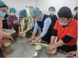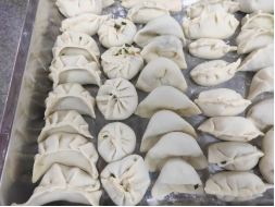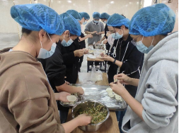 食堂提前准备好了饺子馅,但是饺子皮需要同学们自己制作。首先由第一饭堂沙县小吃档口的厨师讲解制作饺子的流程及注意事项,并做示范教学,随后让同学们动手实操,对同学们包饺子进行指导。看着食堂准备好的食材,同学们热情高涨,揉面、擀面皮、包饺子,同学们分工合作,各显身手。由于同学们来自不同的地方,包出来的饺子也形态各异,有元宝形、半月形、柳叶形等,经过两个小时的忙碌,在万众期待中,一盘盘热气腾腾的饺子终于新鲜出炉,香气四溢,同学们围坐在一起,品尝着自己的劳动成果,在劳动中弘扬了传统文化,在合作中促进了身心健康。