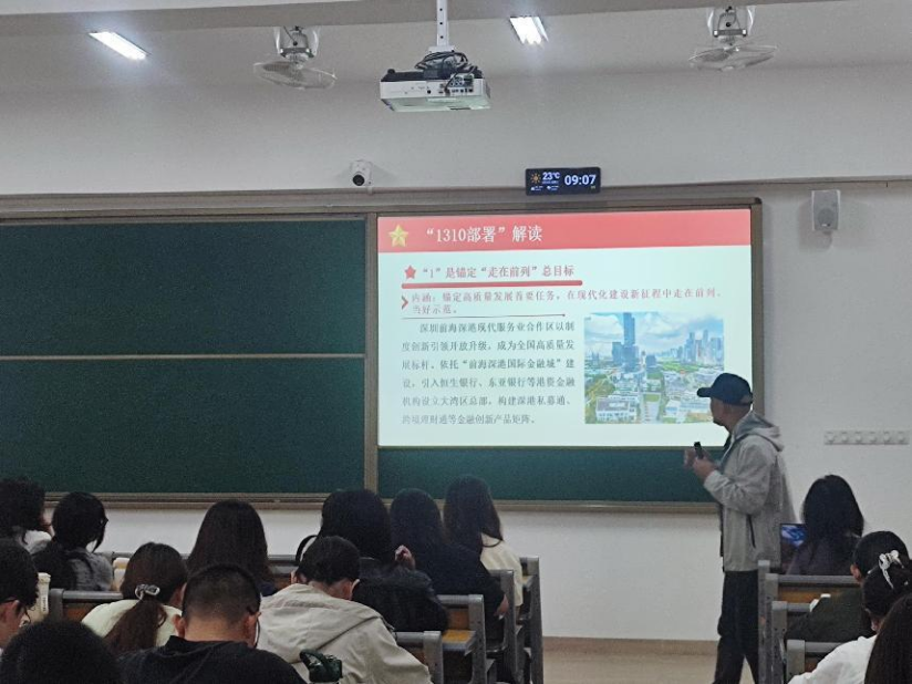 (谢杰,李慧婷)3月26日上午,为深入学习贯彻习近平新时代中国特色社会主义思想,强化青年学子的使命担当与社会责任感,引导其厚植家国情怀、勇担时代使命,suncitygroup太阳集团在惠州校区2栋403教室开展了“院长思政第一课”。该课程以“1310”部署为切入点,由我院院长李培祥主讲,2024级人力资源管理专业和电子商务专业学生参加。