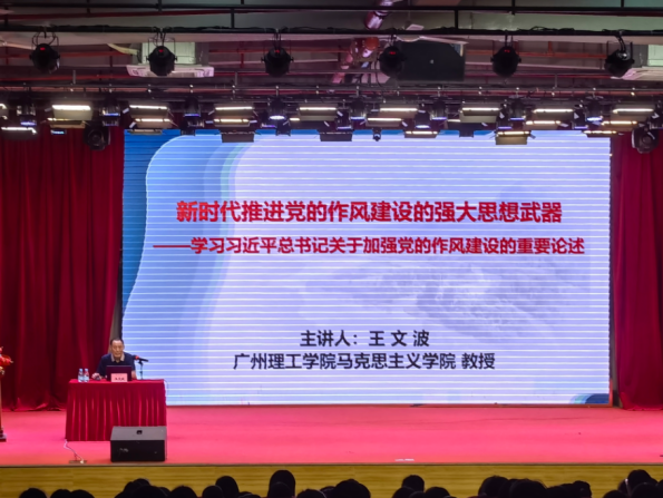 (何锦辉,何玟静)2025年4月24日下午,广州理工学院党校于13栋一号报告大厅开展2025年第1期发展对象专题辅导报告讲座。本次讲座由广州理工学院马克思主义学院教授王文波主讲,党委组织部组织员赵莹雨主持,本次党员发展对象共同参与。本次讲座围绕中国共产党党内作风建设及其重要性,和习近平总书记谈作风建设等方面进行学习。