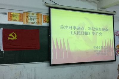 此次会议,一为响应学院党委号召,发挥我院学生党员的模范带头作用,带头学习先进文化精神,使之拥有健康向上的精神风貌;二为鼓励支部党成员通过学习《人民日报》,知晓国内大小事务,关心国家发展动向,激发其自豪感,奋发图强,回报社会。