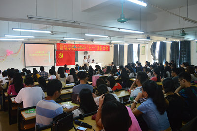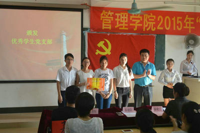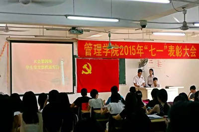 (通讯员:郭欢)按照学校党委的统一部署,在“七一”建党来临之际,为了总结工作及表彰优秀共产党员、优秀党务工作者、先进党支部。6月27日下午,管理学院全体党员在综合楼召开了2015年度表彰暨工作总结大会。出席本次大会的领导嘉宾有:天河学院党群工作部副部长陈朝阳同志、管理学院党总支书记杨晓文同志、管理学院教工党支部书记钟清恒同志;与会人员有:管理学院教工党支部全体党员、管理学院学生党支部全体党员,共约150人。