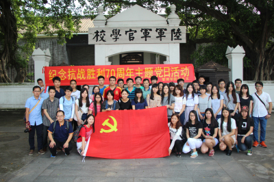 本院讯(通讯员:陈丽媚)9月23日下午,了纪念抗战胜利70周年,缅怀革命历史,加强党员爱国情怀,管理学院教工党员、学生党员等一行人在管理学院党总支书记易国富同志的带领下赴黄埔军校开展“纪念抗战胜利70周年”主题党日活动。