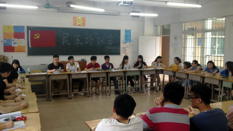 本系讯(通讯员:杨培琪)5月15日中午2点30分在六栋408我系学生第一党支部就评议支部党员的个人表现进行评议进行投票和讨论。到场的嘉宾有学生第一支部书记张方超老师,支部副书记杨培仁,组织委员刘科源,宣传委员袁嘉博,纪检委员何丽雅,统站委员黄思敏,及支部的其他党员同志。