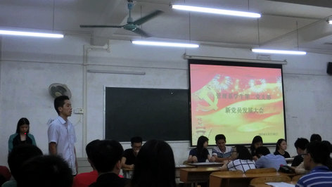 本系讯(通讯员:文磊)5月16日晚上八点,我系学生第二党支部在六栋314召开了党支部新党员发展大会,出席大会有支部书记林成园老师,支部副书记刘莉莉,组织委员杨智荣,宣传委员李彩娴,纪律委员郑家馨,统战委员文磊以及本支全体党员和发展对象。大会的主题是讨论和表决林嘉威、罗耀坤等11位发展对象入党问题。