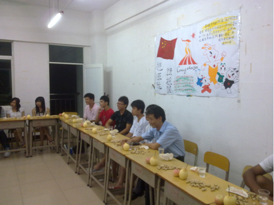 管理系为了2010级新生能在学校欢度中秋,于9月22日晚上八点在6栋308课室举行2010年管理系中秋茶话会,管理系主任伍曙、党总支书记刘元俊、管理系副主任肖振华等出席晚会。系领导和学生共聚一堂,吃月饼看表演,欢乐的气氛弥漫了整个校园。