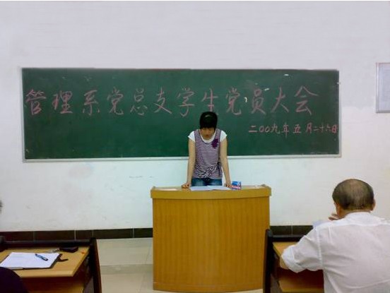 会议第二项,由管理系党总支书记刘元俊同志发表讲话,刘书记首先提到了我系学生党支部支委班子的人事调动情况:原管理系党总支学生第三支部副书记王菊连同志由于个人身兼党内外多份工作,决定答应其请辞申请,其职位由管理系党总支学生第三支部副书记钟开豪同志接任,原管理系党总支学生第一支部组织委员刘春花同志现担任该支部副书记兼组织委员。