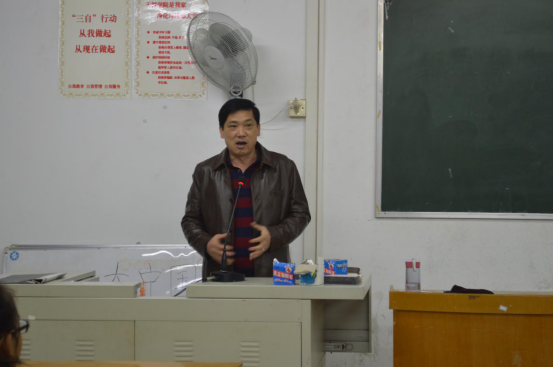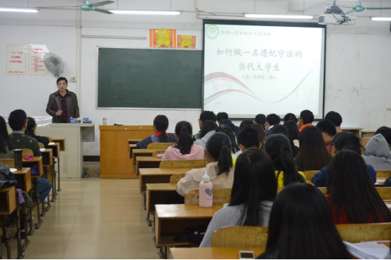 11月23日晚,管理学院党总支书记易国富在6栋414教室对管理学院第28期入党积极分子进行授课,课程以“如何做一名遵纪守法的当代大学生”为主题。