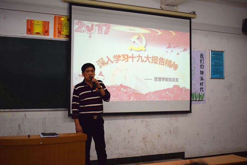 10月25日晚上,管理学院党总支在六栋316课室举行深入学习十九大精神主题党日活动。我院党总支书记易国富、教工党员同志、在校学生党员同志和入党积极分子代表参加了本次活动。