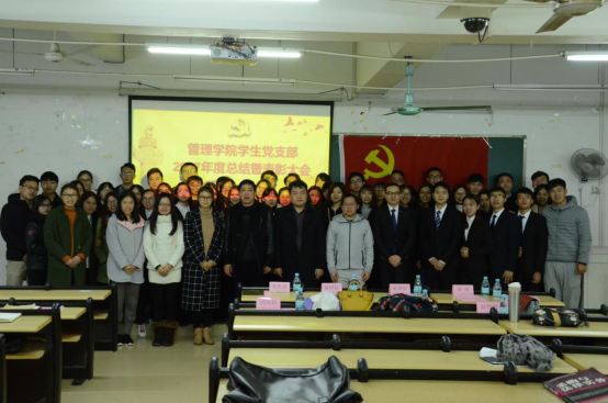 12月17日晚,管理学院学生党支部在7栋218教室举行2017年度学生党支部总结暨表彰大会。出席本次会议的有党委委员、党群工作处副处长陈朝阳同志,管理学院党总支书记易国富同志,管理学院党总支组织委员学生第一党支部书记黄伟剑同志,管理学院学生第二党支部书记黄浩同志,管理学院党总支宣传委员伍小英同志,管理学院党总支统战委员赵竹君同志,教师党员刘培培同志,辅导员杨晨及各学生党员同志和积极分子代表。