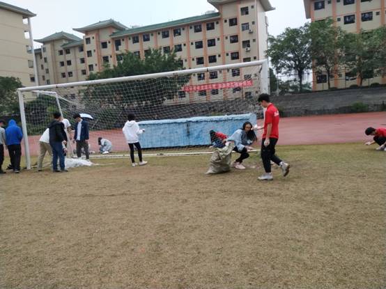 活动中,各同志都持吃苦耐劳肯干精神,不惧风雨,依旧认真工作,互相帮忙,一起为校园卫生出力,以优化校园环境,保持校园整洁与美观。