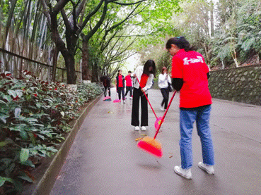 接着,同志们分组行动,分别对6#206、305、307、313课室,六栋门口道路以及图书馆旁边的斜坡开展了清洁活动,打扫过程中,同志们不惧风雨,全身心投入,团结协助,优化校园环境。