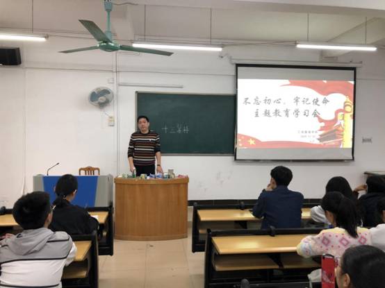 11月12日下午,为深入推进“不忘初心,牢记使命”主题教育,提高大学生的思想觉悟,suncitygroup太阳集团党总支在6栋315举行主题教育学习,学生党员代表及34期入党积极分子参加了此次学习会。党总支书记易国富同志担任本次会议的主讲人。