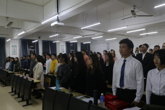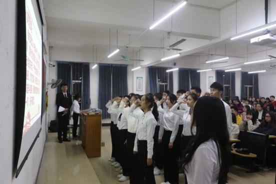 伴随着嘹亮的国歌,会议正式开始。在叶常青同志的带领下,第33期预备党员面向党旗庄严宣誓,铮铮誓言展现着新生代党员的精神风貌。