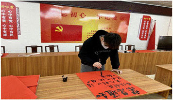 学生党员黎岳镔同志,充分发挥自身书法特长优势,从年前开始至今,负责社区宣传工作,书写社区内宣传标语、社区检测站宣传标语,传播防疫正能量。同时,他在社区两个监测站轮流值班,负责社区居民车辆、人员进入登记和测量体温。另外,他主动联合当地大学生共同制作短视频宣传防疫知识。