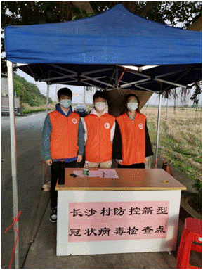 面对疫情防控,学生党员陈振威同志,报名参加了老家江门市台山市赤溪镇长沙村的防疫检控志愿者队伍,并在各村口进行设点,对进出的人员车辆进行检测,他表示想为乡里尽一份年轻的责任,希望疫情早日褪去,寒冬终会到,暖春就来临。