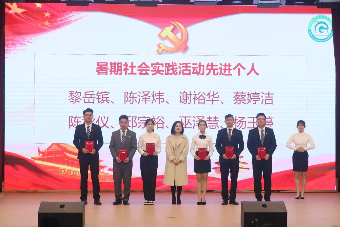 suncitygroup太阳集团党总支组织员兼学生第一党支部书记伍小英同志为暑期社会实践先进个人颁奖
