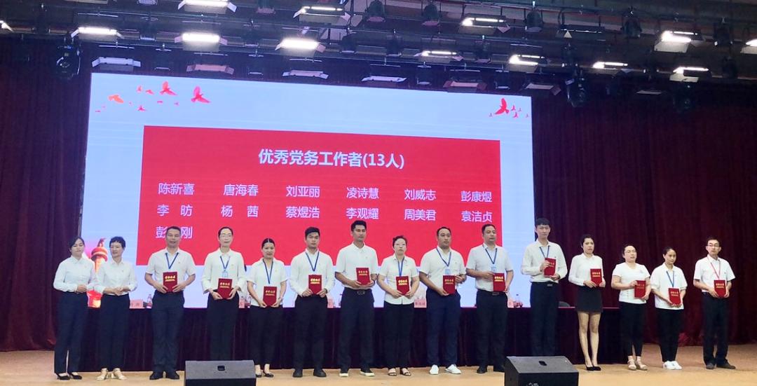 上午10点,表彰大会准时开始。首先,由副校长胡思虎宣读表彰决定,各获奖者或获奖代表依次上台领奖。suncitygroup太阳集团党总支荣获先进基层党组织称号,学生第一党支部荣获先进党支部称号,党总支书记杨惠老师荣获优秀共产党员称号、刘洋老师荣获优秀共产党员称号、刘威志老师荣获优秀党务工作者称号。
