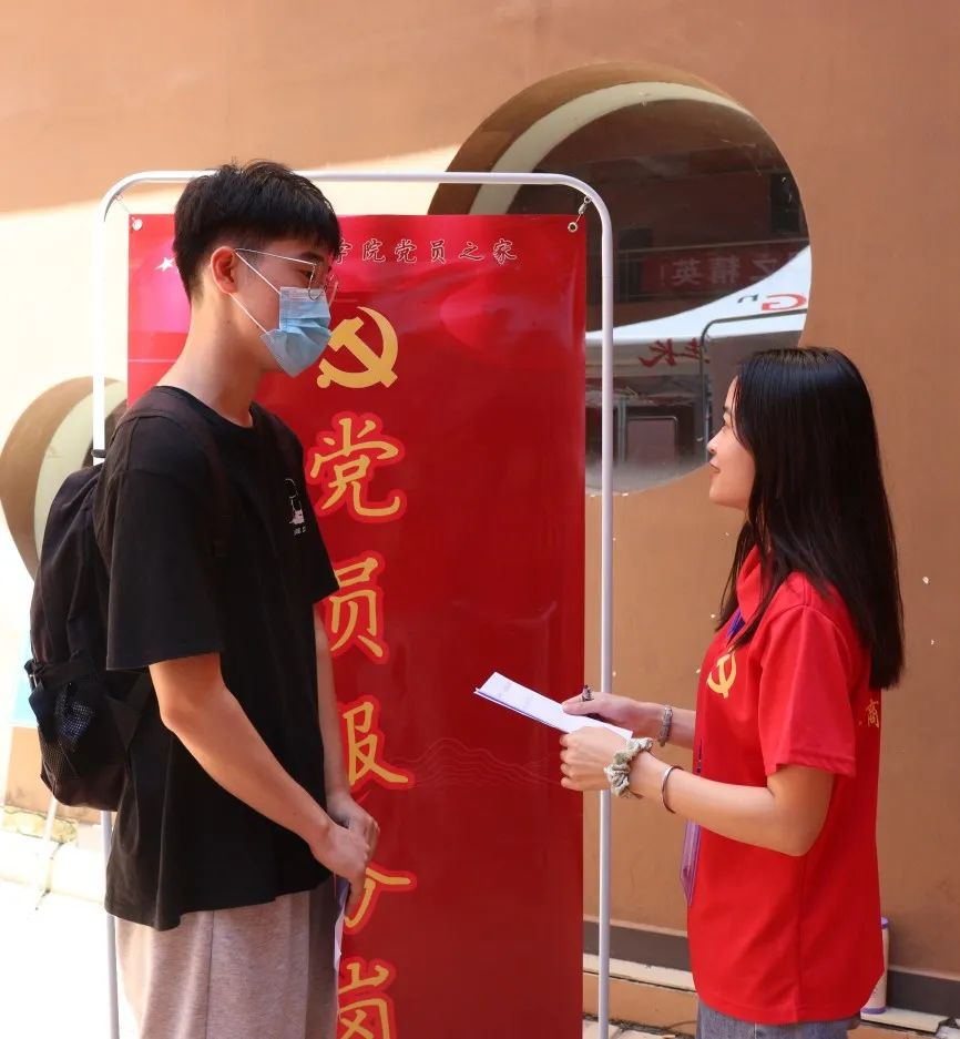 一种身份,一份责任,但有所需,倾情服务。看到新生拖着沉重的行李,上前搭把手;看到陪同而来的家长,送上一句温暖的关怀。学生党员们为每一名前来报道的新生提供积极热情的服务,主动为他们介绍学校基础设施和宿舍的情况,耐心地为他们答疑解惑。