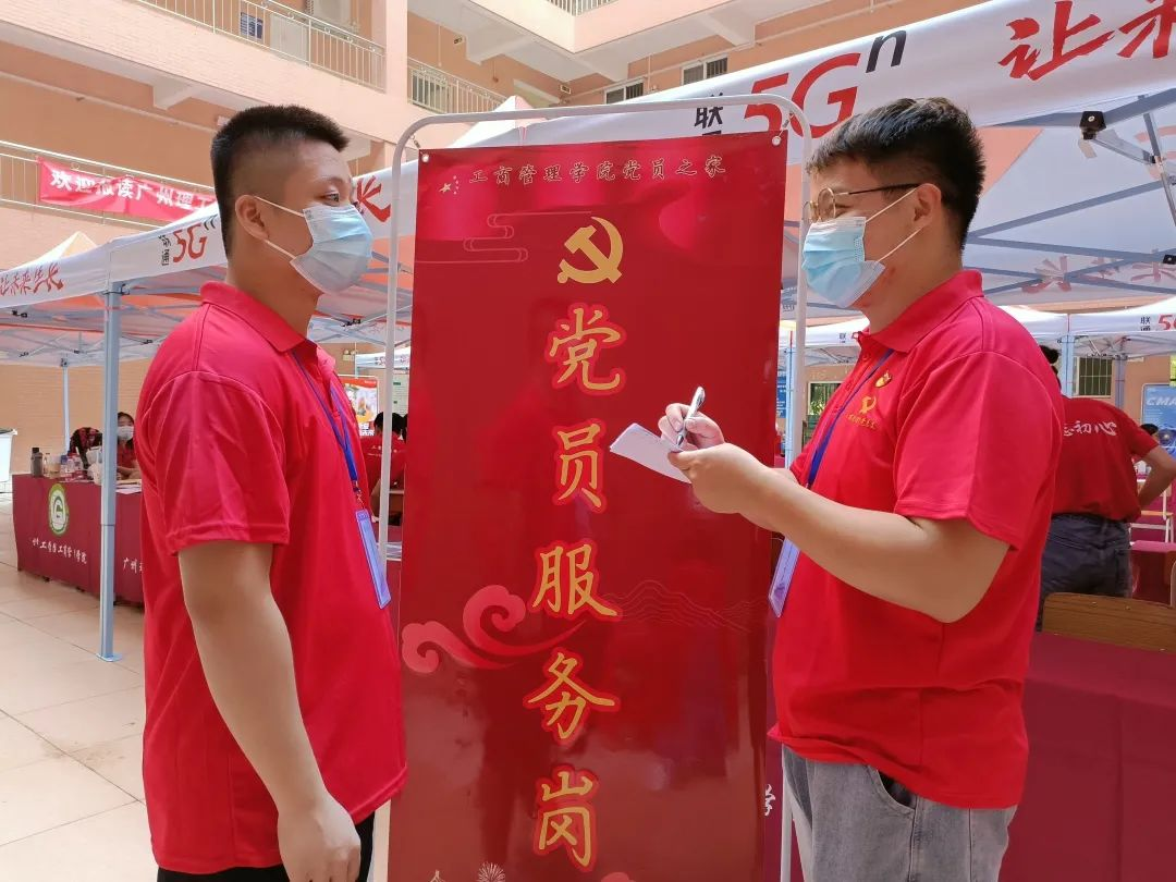 在7栋大本营处,我院设立了党员服务岗,党员服务岗主要负责的工作:解决新生或家长报到注册可能遇到的问题和困难;指引前往宿舍的路线,简单介绍学校学习生活情况;在特殊情况下为新生及家长带路或提供其他帮助。
