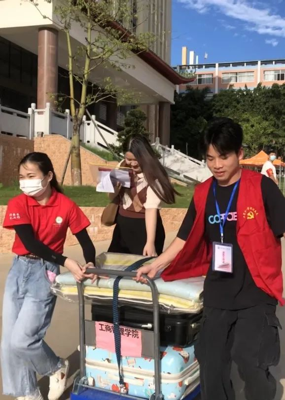 在学生党员们的积极帮助和细心照料下,远道而来的新同学一入学就能感受到家的温暖。