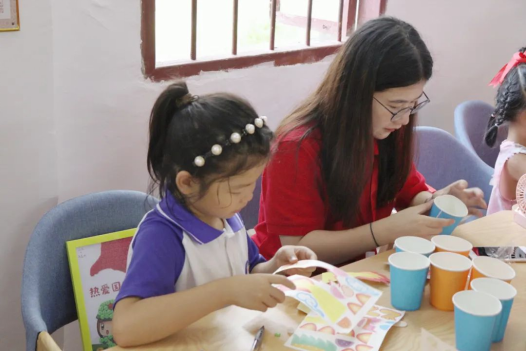 龙,是中国的象征,对每一个炎黄子孙来说,龙的形象是一种符号、一种意绪、一种血肉相连的情感,实践队选择同小朋友们一起制作趣味纸杯龙,通过这种方式向小朋友们传递给了中华民族的情感、中国的文化。一个个多彩的纸杯龙在小朋友手上生动地舞动着,课堂上充满了欢声笑语。