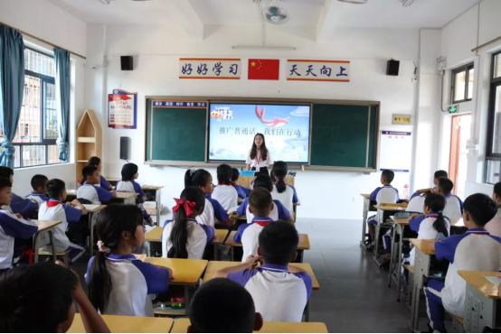 在课堂上,实践队队员通过讲解普通话的含义、使用普通话的重要性等理论知识让学生们对普通话有一个最基本的了解。
