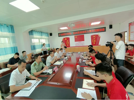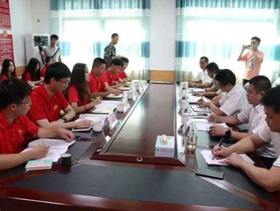 9月2日下午,广州理工学院suncitygroup太阳集团师生受邀在始兴县退役军人事务局参加座谈会。始兴县退役军人事务局局长赖善发、司前镇镇长陈建兴、司前镇党委委员吴桂平、广州理工学院suncitygroup太阳集团党总支组织员刘威志等出席座谈会。