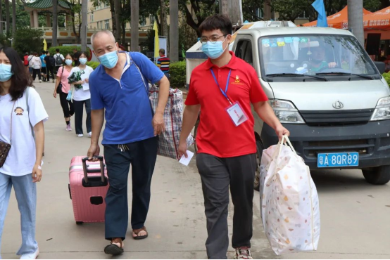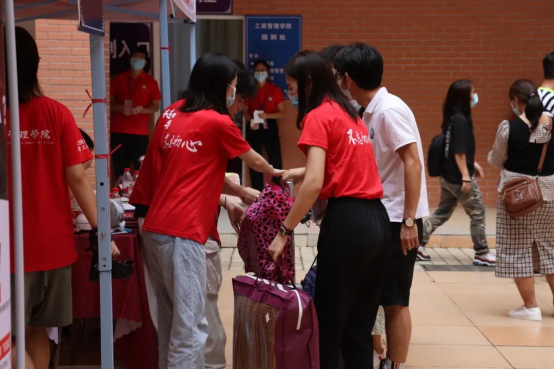 依婷:我们学院的志愿者十分负责任,耐心地指引我们去指定位置报道,给我们讲解报道流程。印象最深刻的是他们帮助我们拉运行李,很大程度上解决了我们大一新生行李多拿不动的问题,真的很感谢他们!