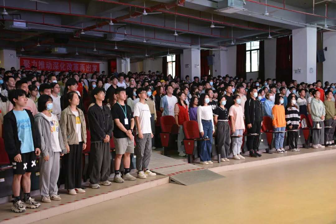 大会伊始,全体参会人员起立,奏唱中华人民共和国国歌。