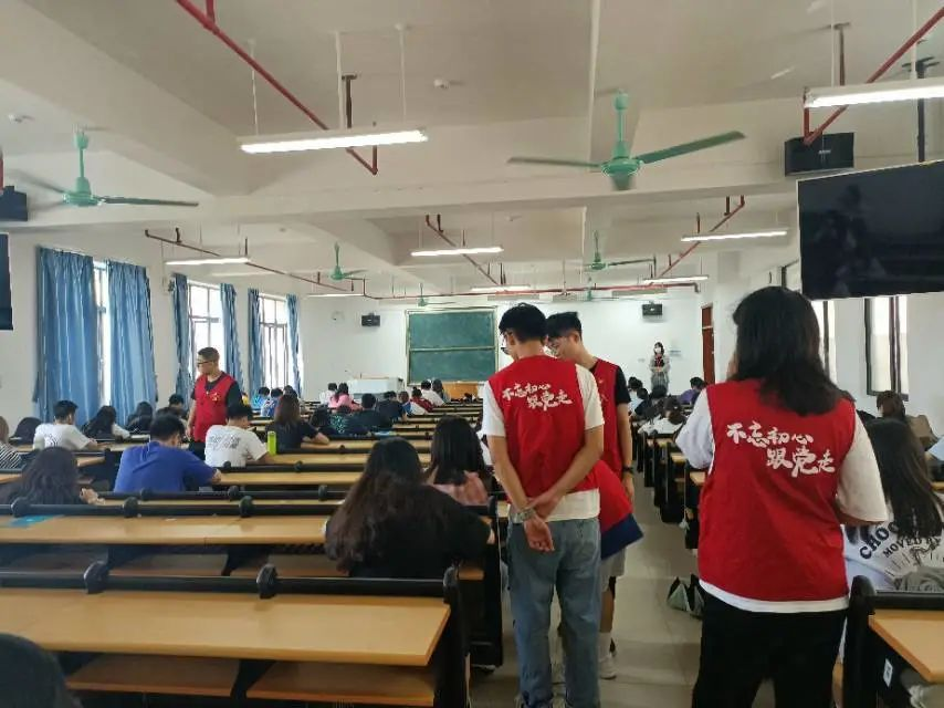 考试开始之前,同学们提前来到教室做准备,本次考试内容紧扣习近平新时代中国特色社会主义思想、党的十九大精神以及党史、党章、党员发展程序等党的基本知识。伴随着考试铃声的响起,同学们开始考试,全神贯注,一丝不苟地完成题目。考试期间,监考员严肃监考,巡视考场情况。各位考生也严格要求自己,自觉遵守考场纪律,体现出对本次考试的重视。答卷完成后,各位发展对象有序提交答卷离开考场。