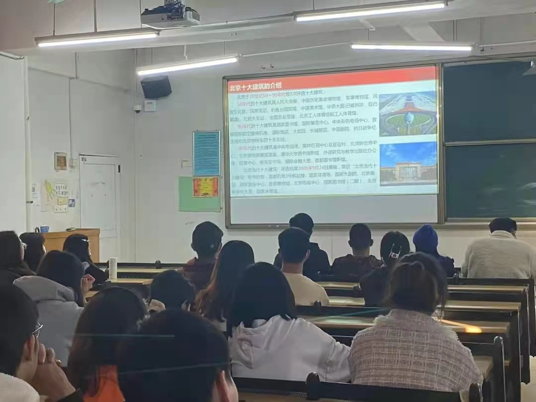 紧接着,主讲人刘星月同志带领学生党员们进一步了解“北京十大建筑”的历史背景。从1959年-2009年共有四次的评选,每一次评选都具有不同的意义。