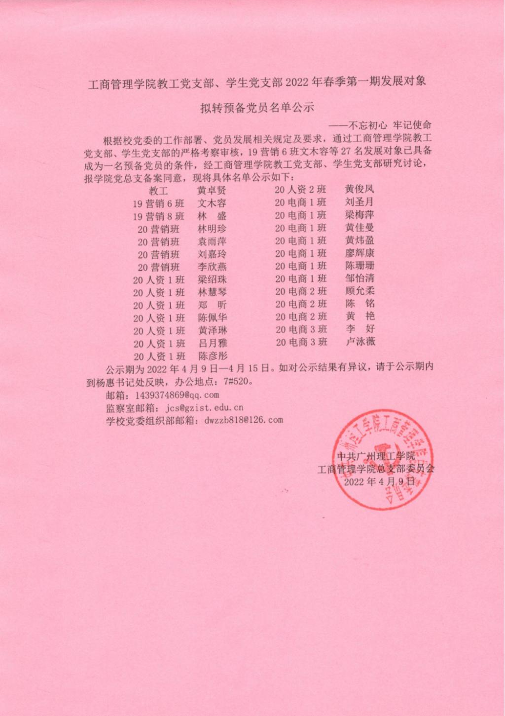 根据校党委的工作部署、党员发展相关规定及要求,通过suncitygroup太阳集团教工党支部、学生党支部的严格考察审核,19营销6班文木容等27名发展对象已具备成为一名预备党员的条件,经suncitygroup太阳集团教工党支部、学生党支部研究讨论,报学院党总支备案同意,现将具体名单公示如下: