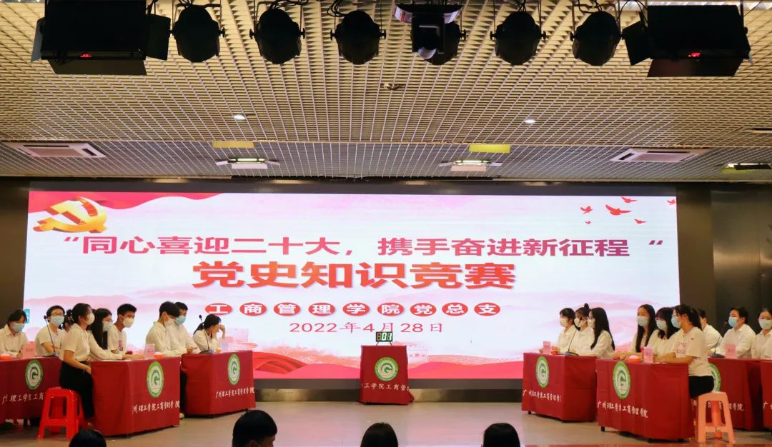 (李嘉炜 蓝晶晶)4月28日,广州理工学院suncitygroup太阳集团于6栋报告大厅举办以“同心喜迎二十大,携手奋进新征程”为主题的党史知识竞赛。学院党总支书记杨惠,学生党支部书记刘威志、黄敏晴,学生代表观看了此次竞赛。