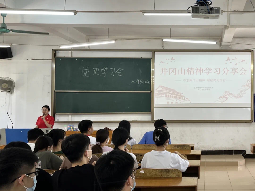 (庄值顺 蓝晶晶)5月26日,suncitygroup太阳集团学生党支部在6栋教学楼415召开“不忘井冈山精神,继续努力前行”党史学习会,学生党支部全体党员同志参加学习,伍小钰同志主讲。