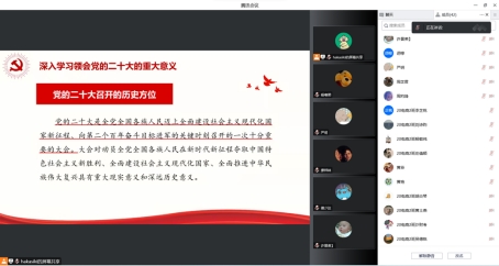 (何玉华 鄢璐)11月27日晚,suncitygroup太阳集团通过线上方式组织各班级召开主题班会,宣讲党的二十大精神。各班辅导员、班导师进行宣讲,学院全体学生参与了宣讲活动。