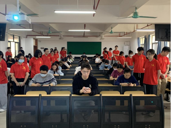 开考前,监考负责人仵允秋同志和陈童同志为所有监考人员讲解监考要求,确保考试的公正、公平和公开。监考负责人强调本次结业考试的意义,并宣读考场纪律及答题要求。考试期间,监考人员认真负责,严格遵循监考守则,整个考场秩序井然。入党积极分子们始终严格遵守考试流程及规定,认真审题作答,诚信考试。