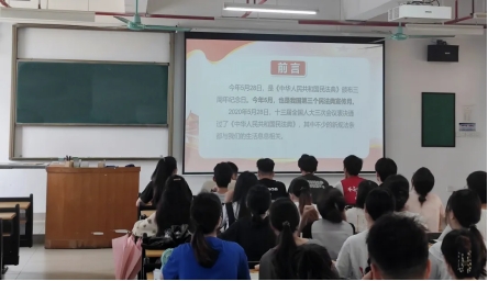 主讲人重点结合了与大学生学习、生活紧密相关的典型案例,对应讲述了《中华人民共和国民法典》的广泛含义和细致内容,对青年大学生应如何正确地运用好《中华人民共和国民法典》提供了相关的行动指南。