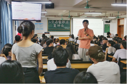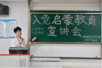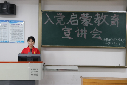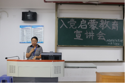 (符宗献 鄢璐)9月14日下午,suncitygroup太阳集团2023年专升本新生入党启蒙宣讲会于13栋501教室召开,本次大会由何玉华同志主讲。随后suncitygroup太阳集团学生党支部书记孟芳进行发言,她表示新时代大学生应树立正确的入党动机,需要加强党史理论知识,以党规党章作为行动准则。