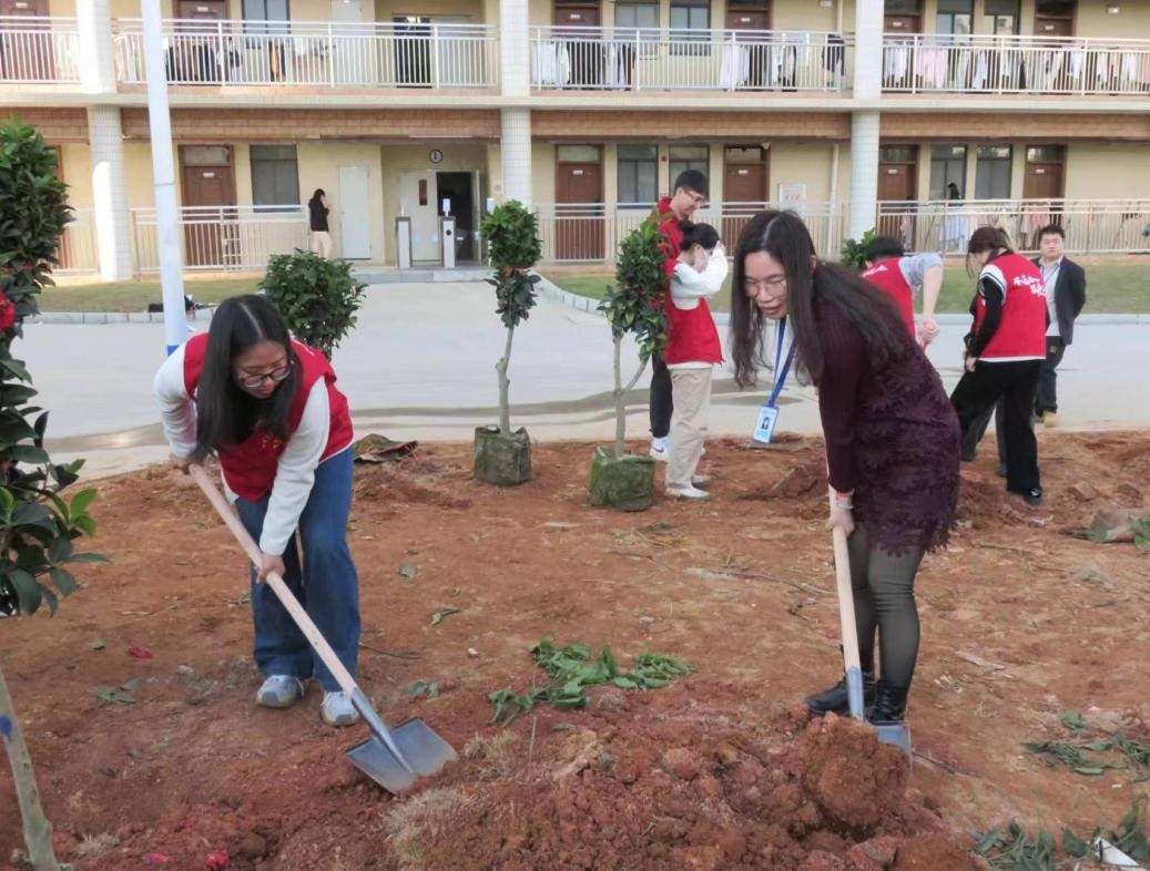 (麦雪聪,梁敏亭) 3月12日,为响应学校号召,suncitygroup太阳集团于我校白云校区31栋宿舍楼前参与“绿美广东,青年先行”义务植树活动。本次活动由suncitygroup太阳集团党总支书记杨惠、学生党支部书记刘威志、孟芳及辅导员廖婉余、陈剑君带领我院部分学生参加,此外我院还特别邀请王富喜教授共同参与。