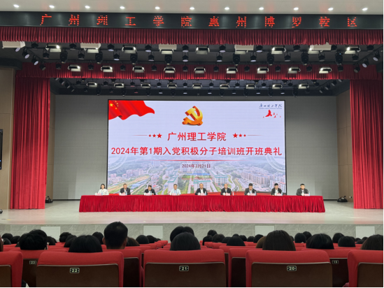 3月21日下午,广州理工学院党校2024年第1期入党积极分子培训班开班典礼分别于惠州校区大礼堂和白云校区1号报告厅同时举行。以切实加强入党积极分子对党的认识,端正其入党动机,坚定理想信念,把好党员发展的“质量关”。莅临本次开班典礼的嘉宾有学校党委书记黄圣诚,学校党委委员、副校长肖海,主持人、副校长张志红,各二级学院党总支书记以及各二级学院的入党积极分子参加了本次开班典礼。