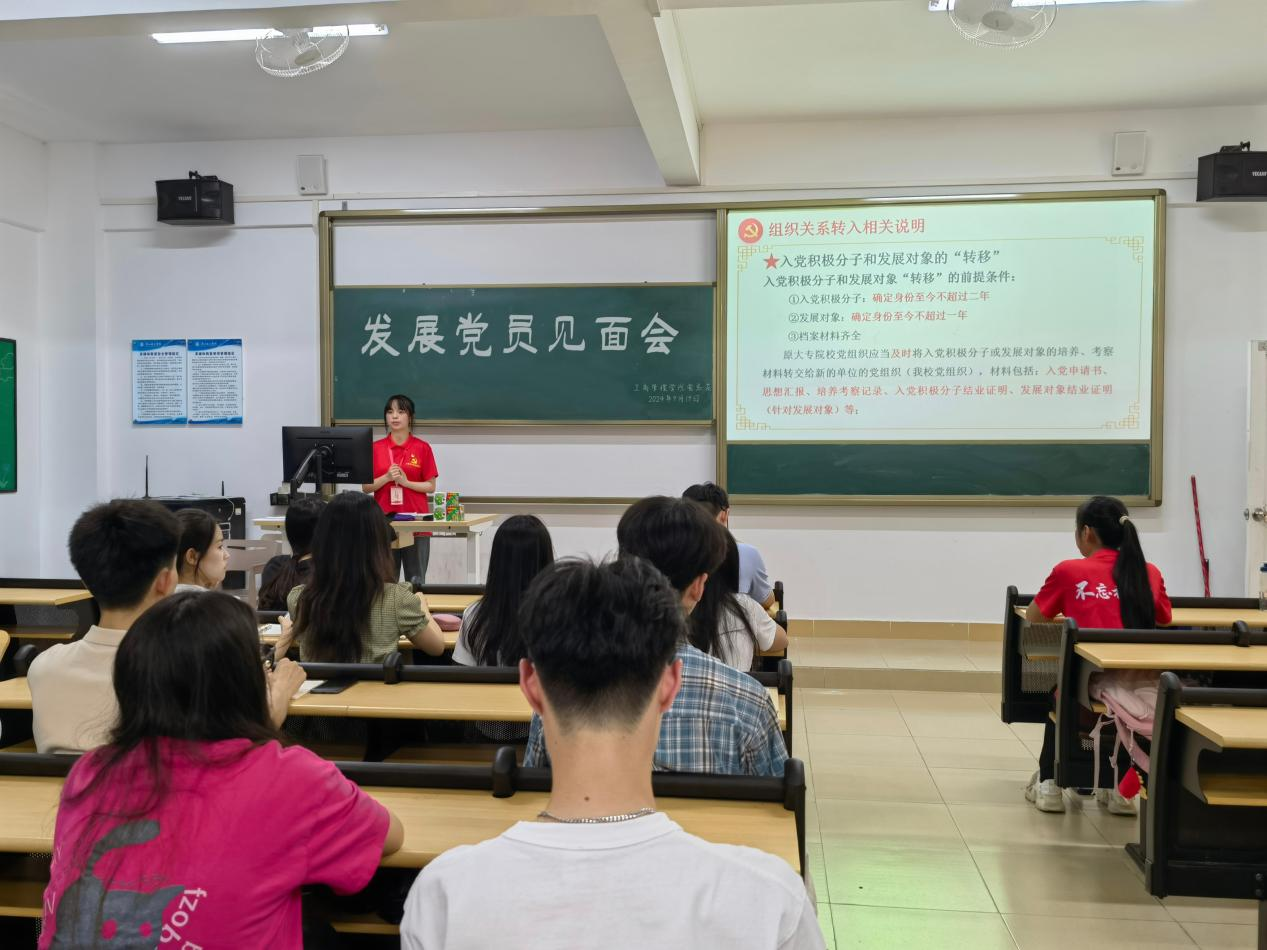 接着,主持人介绍学院党组织的结构与发展情况,通过丰富多样的党建活动增强党员和积极分子的党性意识,凸显党建工作的重要性和实效性。她还明确了组织关系转接的流程及注意事项,特别指出个人档案管理的重要性,旨在帮助新生党员快速完成组织关系转接。