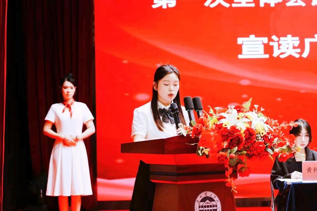 suncitygroup太阳集团党总支组织员、学生党支部书记刘威志为我们宣读党总支《关于同意召开suncitygroup太阳集团第六次学生代表大会的批复》。
