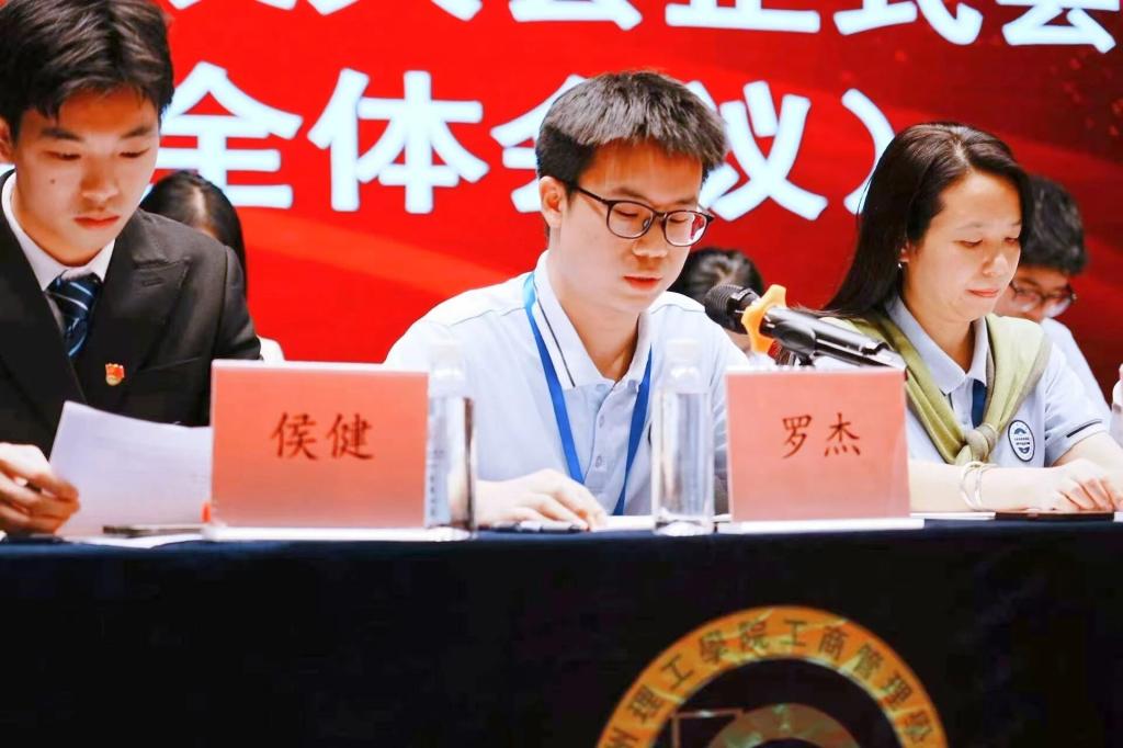 suncitygroup太阳集团第五届学生会执行主席侯健代表大会作分团学习与讨论报告。