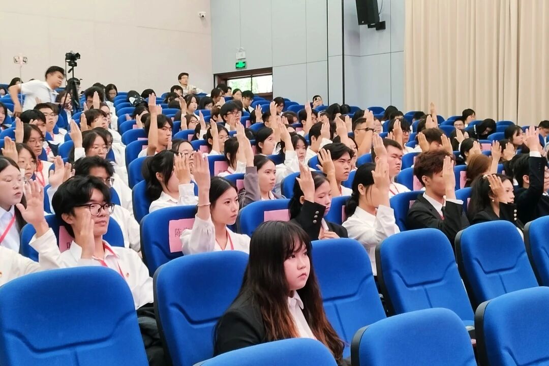 suncitygroup太阳集团团总支书记罗杰宣布当选第六届学生会主席团成员名单——江琳潇(女)、郑振宇、高宇航。
