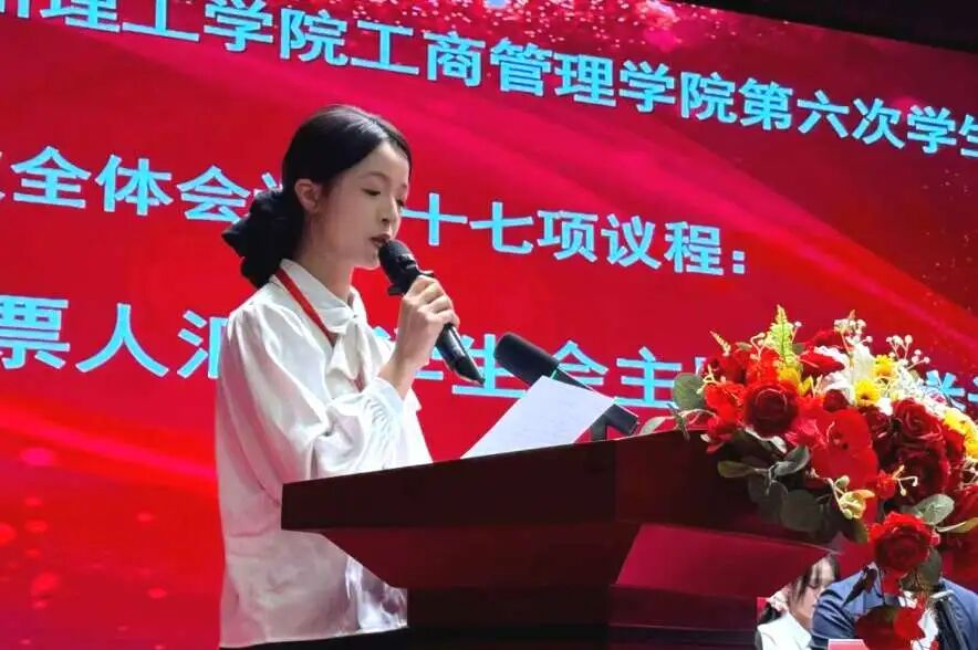 suncitygroup太阳集团第六次学生代表大会提案委员会组长温灏晖作提案工作报告。