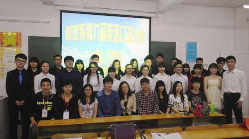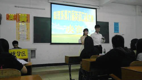 本系讯(通讯员:林睿)Where has our time gone?时间都去哪儿啦?4月24日22:00,我系第九届英语口语大赛决赛在经管楼510圆满结束!本次大赛为我系同学提供了一个展现自我英语才华的舞台,在这里他们可以翱翔于英语的海洋中。本次活动旨在提高我系大学生的英语口语水平、活跃校园英语文化生活、提高大学生的综合素质。这次竞赛选拔,为大家创造了良好的学习英语的平台,同学们英语口语表达与应用能力得以提高,激发了学习英语的积极性。