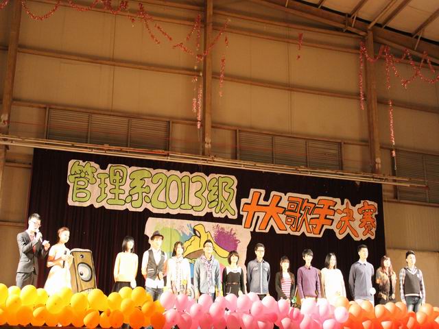 经过近半个月的层层选拔,12名成功晋级的选手站上了决赛的舞台。比赛场面异常火爆,气势磅礴的《潇洒走一回》、温暖贴心的《偶尔》、柔情似水的《痴心绝对》深受观众的喜爱,让在场的所有人感受到他们洋溢的青春热血。选手们怀揣着激情与梦想,用他们美妙的歌声感染了观众们的心灵。经过两个小时的激烈竞争,各个奖项尘埃落定。微博投票产生的最高人气奖由吴昊同学获得,刘尘染同学自信大方的姿态,征服了评委的视觉荣获最佳台风奖,深情演唱的朱嘉妮同学凭借着的悉心装扮荣获最佳造型奖,蔡俊明、陈伊可、李柏威、吴昊、马潼锐、陈瑶、黄学炼、许繁、黄颖祺十位选手荣获管理系2013级“十佳歌手”称号。